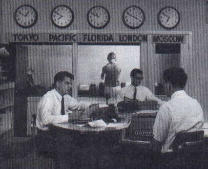 |  | Here's a shot from Channel 13's newsroom, circa 1958.  At left is Ed Herbert, and Al Moffat center, with Carolyn Day at the teletype.  WTVT had the first hour-long news block in November of 1958. |