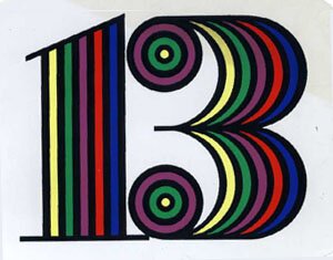 This colorful logo debuted in the late 60's, and was used until 1976. It's interesting to observe that the CBS eye is no longer a part of the graphic. This was the result of an edict from CBS to separate the non-O and O CBS station's news from being confused with the CBS network news operations. This 'unbranding' lasted for many years until competition from cable and satellite made CBS and the other networks urge affiliates to reincorporate the network I.D. into local promotion and news. These stylized 13s were used on-air and also were applied to the side of the studio cameras and other equipment.